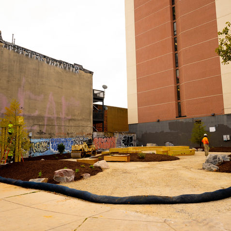In 2023, under my creative direction, we transformed a cluster of vacant lots on the corner of North Charles Street and 20th Street into a vibrant community oasis. Designed with sustainability and placemaking at its core, the project provided more than 350 residents of the nearby J. Van building—many seniors and low-income individuals—with their first dedicated outdoor space.